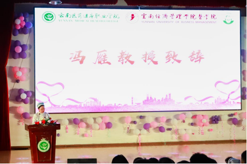 由老师、学长、各学生社团录制的祝福视频拉开了晚会的序幕,在场学生的热情瞬间被点燃。晚会开始,由云南省护理学会秘书长、助产专业带头人冯雁教授致开幕辞,为教师和学生们送上节日的祝福,寄语同学们——踏着南丁格尔的足迹,练就过硬的专业本领,争做新时代的南丁格尔!